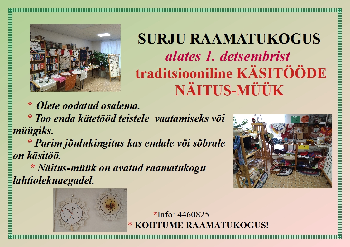 * Alates 1. detsembrist traditsiooniline "KÄSITÖÖDE
